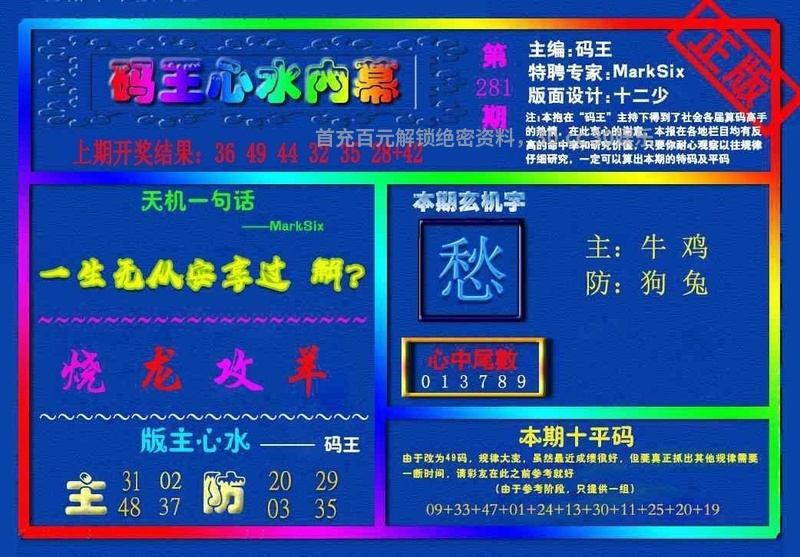 281期:🎋 01.04.07.10.11.13.14.16.19.22.23.25 26.28.31.34.35.37.38.40.43.46.47.49 |
